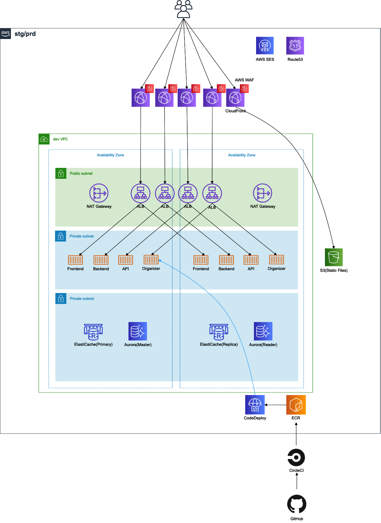 今回イベントレジスト様では、「EventRegist」の基盤として、コンテナ技術を活用した、自社専用環境を構築したい大規模法人向けWebサービス「EventRegist Enterprise」の構築を検討されていました。そこで、AWSにおける同プラットフォームの環境構築から運用までをアイレットが担当しました。