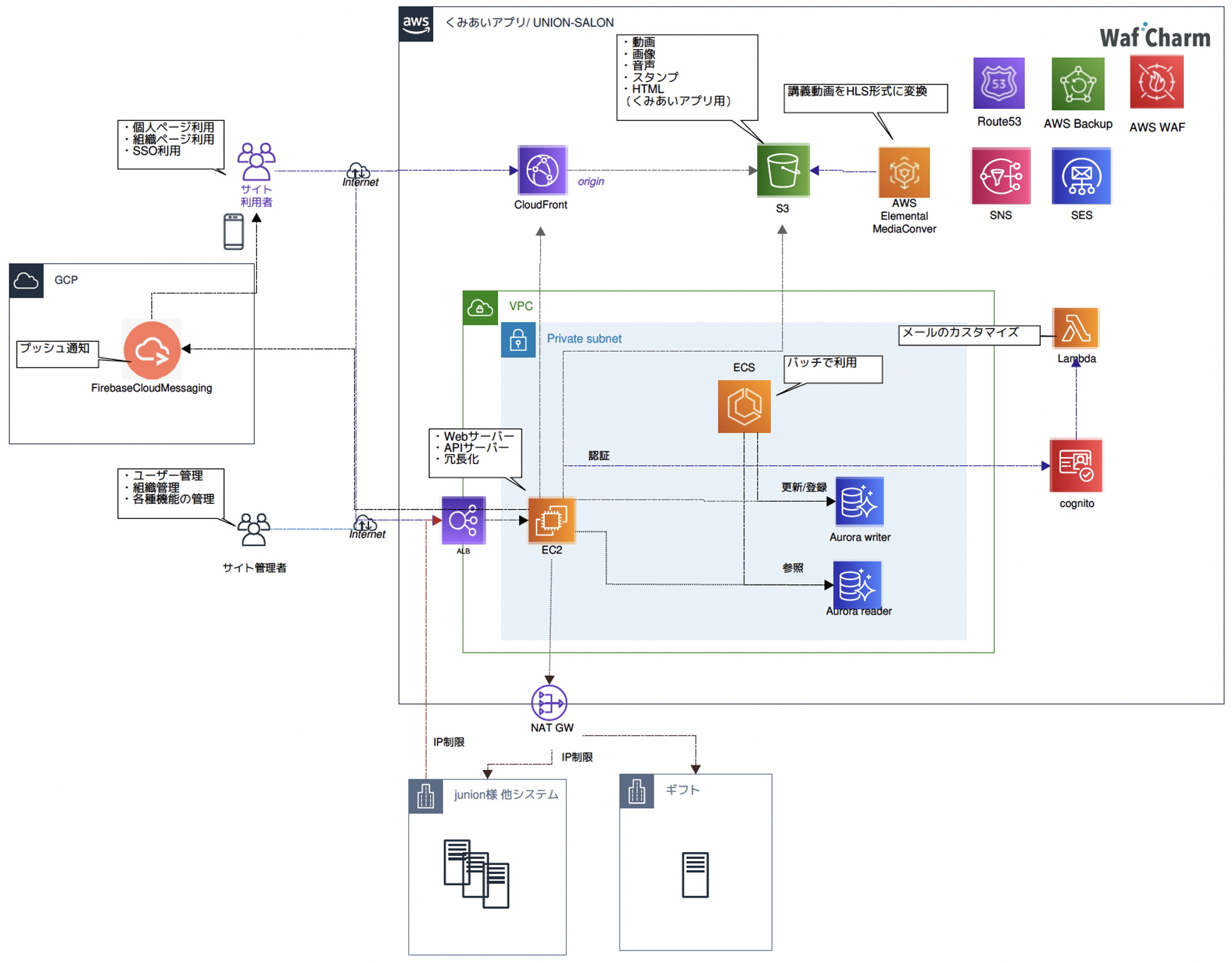 お客様からのご要望であるログインや動画視聴に応じたユーザーへのポイント付与機能や、動画視聴後にクイズを出題する機能、動画の視聴完了率を表示する機能も、AWS のマネージドサービスを適切に活用することでご要望を実現いたしました。さらに、組合員同士でデジタルギフトをプレゼントする機能については QUO カード Pay と連携させるなど、必要に応じて外部サービスも活用しながら開発を進めました。