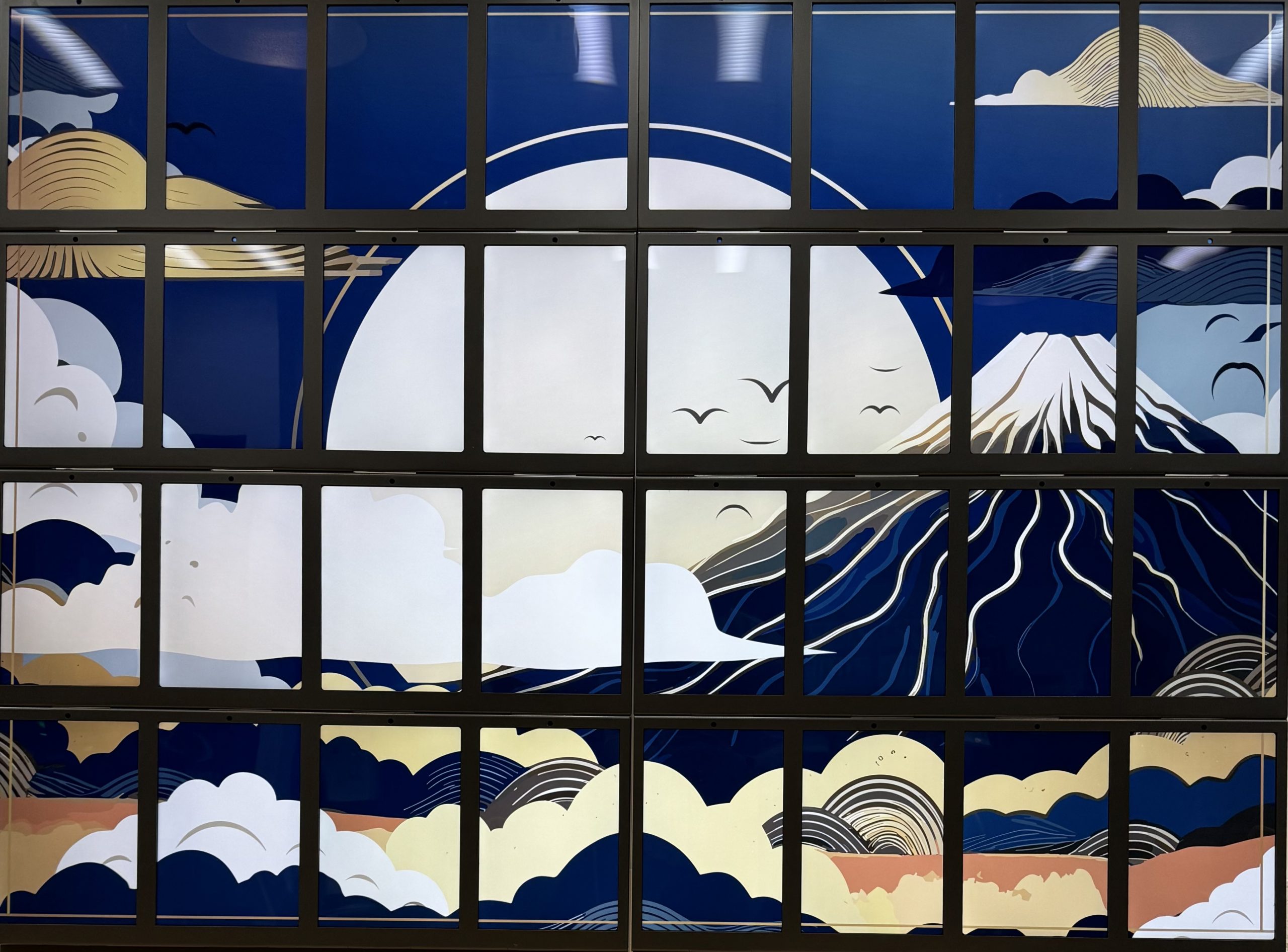 デモンストレーションでは32台の iPad を同期し、シームレスに連動した一つの映像を再生することで、通常のディスプレイとは異なるインパクトを生み出しました。UI/UX にもこだわり、シンプルなタッチ操作による大胆なアニメーション動作とイメージ創出を実現しています。
