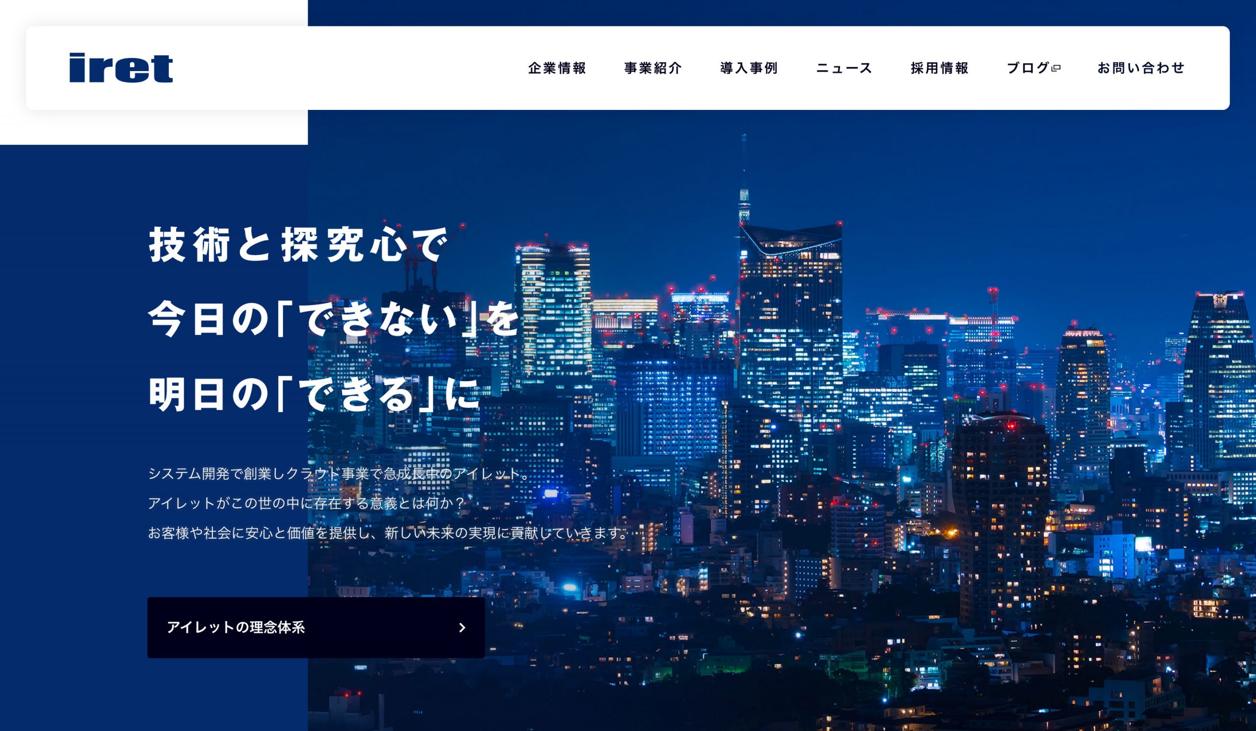 アイレットのコーポレートサイト トップページ・ファーストビュー
