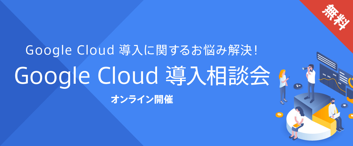 Google Cloud 導入に関するお客様の不安や悩みを「Google Cloud 導入相談会(無料)」で解決しませんか?Google Cloud の基本的なご説明はもちろん、導入に関するどんなご相談にも、経験豊富なスタッフが対応いたします。オンラインで開催しておりますので、ぜひお気軽にお問い合わせください。