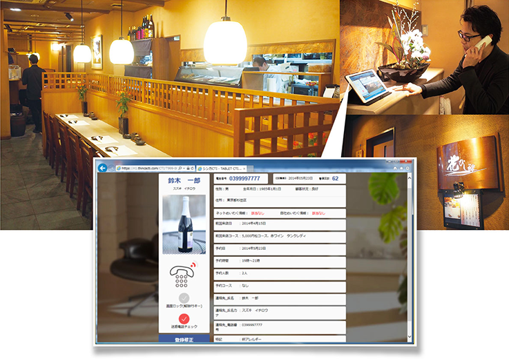 「シンカCTI」は、電話着信時に顧客情報(名前、住所、購入履歴など)や着信回数が、受電側の手元のタブレットやPCに表示されるサービスです。着信とほぼ同時に、過去の購入履歴や前回の予約内容などの情報が表示されるため、店舗スタッフは顧客情報を確認しながら、柔軟な電話対応を行うことが可能となります。