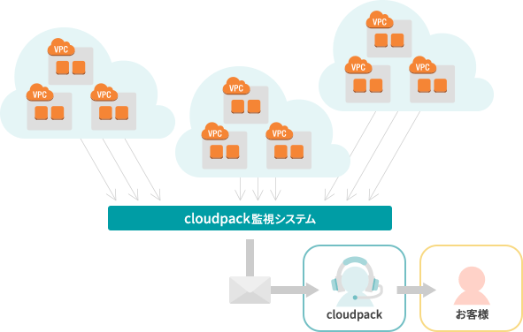 cloudpack ではお客様がご契約されたすべてのインスタンスに対して、ディスク使用量、プロセス数などのリソースやSSHの監視を24時間行っています。