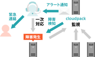 障害発生時には、再起動などの一次対応を実施の上、緊急連絡先にご報告いたします。